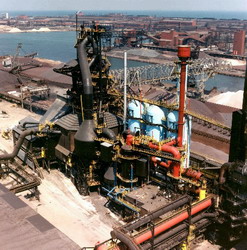 在燒結(jié)車間中,制備鐵礦石。鐵礦石被壓碎碾成標(biāo)準(zhǔn)化的顆粒,被燒結(jié)或粘合在一起。燒結(jié)的鐵礦石隨后被壓碎,并按一層焦炭、一層礦石的交替方式,被加入高爐中。焦炭是是從富炭煤蒸餾出的固體殘?jiān),極易燃燒。
