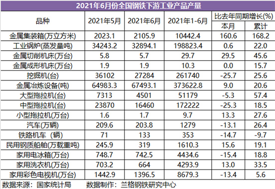 2021年1-6月份全國鋼鐵下游工業(yè)產(chǎn)品產(chǎn)量