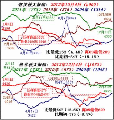 從近期鋼材現貨價格走勢看,全國鋼材價格自9月中旬起的大幅反彈,到11月中旬的重拾跌勢(見上圖),預測11月份行業或將重陷虧損境地,12月份鋼價在前期的低價位上,難言反轉。因此可以斷言,今年全國鋼鐵業現歷史性虧損已成定局。